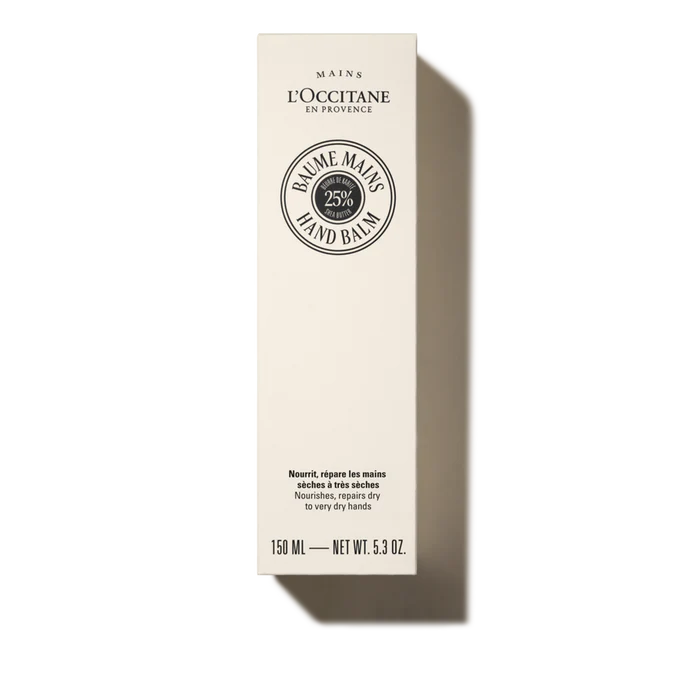 k të agresorëve mjedisorë (i ftohti,ajri i kondicionuar). Me teksturën e tij shumë të pasur, ky balm shkrihet në duar dhe thonjë që nga momenti kur aplikohet dhe masazhohet. I pasuruar me alantoinë, ndihmon në zbutjen e menjëhershme të lëkurës, duke sjellë rehati dhe butësi. I përdorur çdo ditë, ai ndihmon në mbrojtjen e duarve nga thatësia. Gjalpi Shea është një balsam natyral bukurie, i përdorur nga gratë në Afrikën Sub-Sahariane. Që nga vitet 1980, L'OCCITANE ka krijuar një partneritet të qëndrueshëm dhe të drejtë tregtar me gratë në Burkina Faso që e prodhojnë atë. Për të përjetësuar këtë histori me gratë e këtij vendi, Fondacioni L'OCCITANE përfshihet për sipërmarrjen e grave duke mbështetur programet e shkrim-leximit, trajnimit dhe mikrokredive, si dhe zhvillimin e kompanive të krijuara nga gratë.