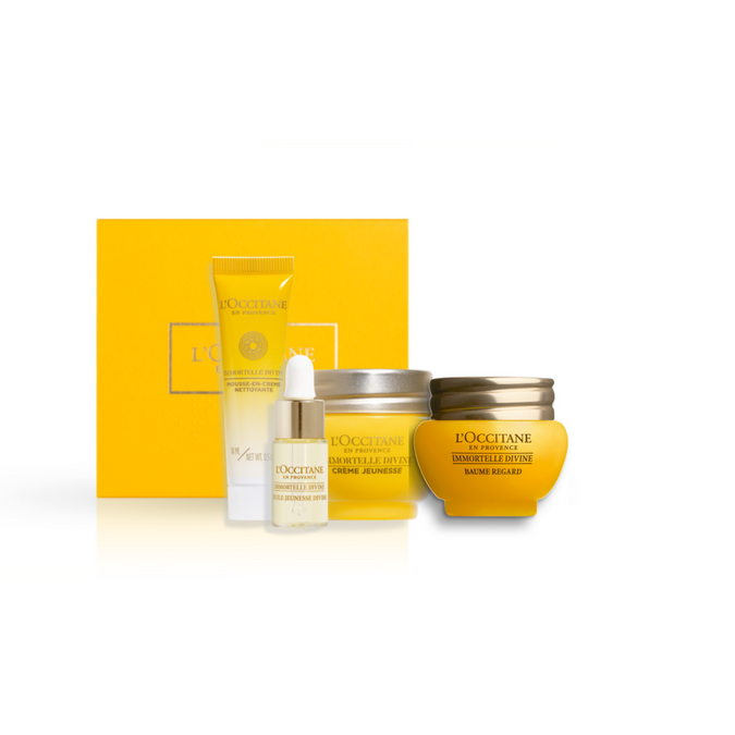Zbuloni Bukurinë e Përjetshme me Setin Immortelle Divine. Me vetitë e saj të pabesueshme kundër plakjes, seti Immortelle Divine është krijuar për të ofruar kujdesin më të avancuar për lëkurën tuaj.