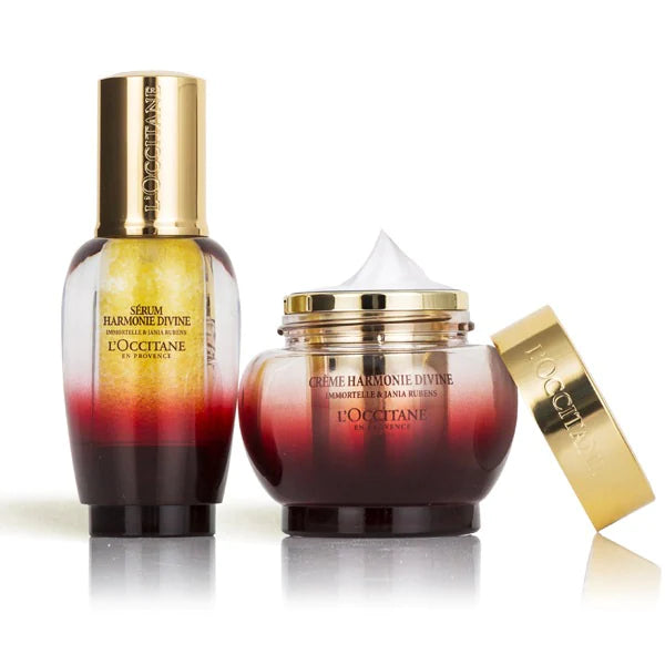 Koleksioni Suprem Divine Harmony kombinon bukur fuqitë rigjeneruese të dy përbërësve të jashtëzakonshëm që sfidojnë moshën: Jania Rubens - algat e kuqe me aftësinë për t'u rigjeneruar përjetësisht dhe Immortelle Millésimée, lulja që nuk vyshket kurrë. Fuqitë e jashtëzakonshme të rigjenerimit të dy ekstrakteve të tij të çmuara ofrojnë veprim të përqëndruar për të luftuar efektet e dukshme të kohës dhe për të vepruar në konturet dhe vëllimet e fytyrës. Ditë pas dite, Divine Harmony zbulon një lëkurë rrezatuese dhe më të lëmuar. Konturet e fytyrës duken të përcaktuara dhe të balancuara.